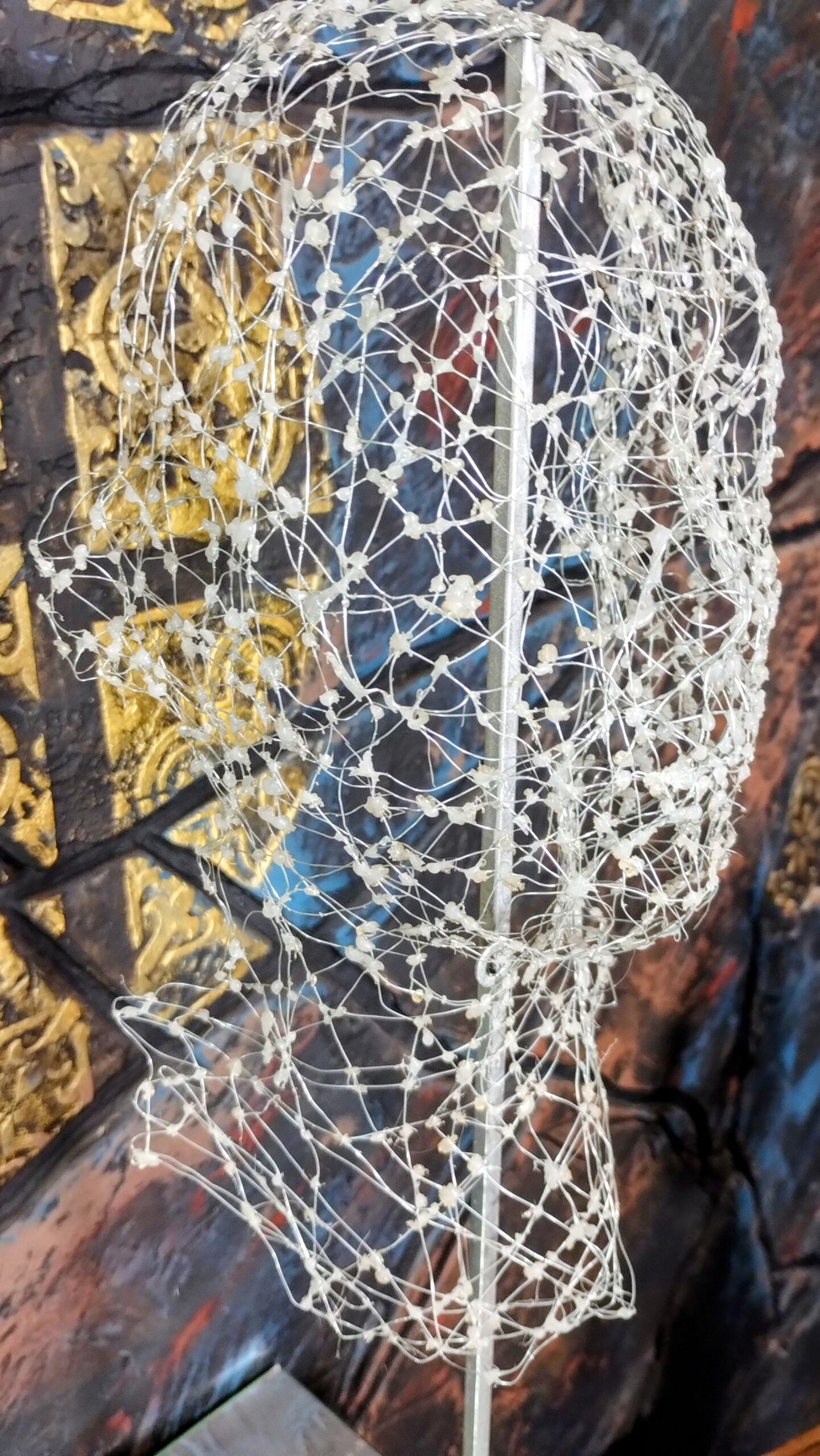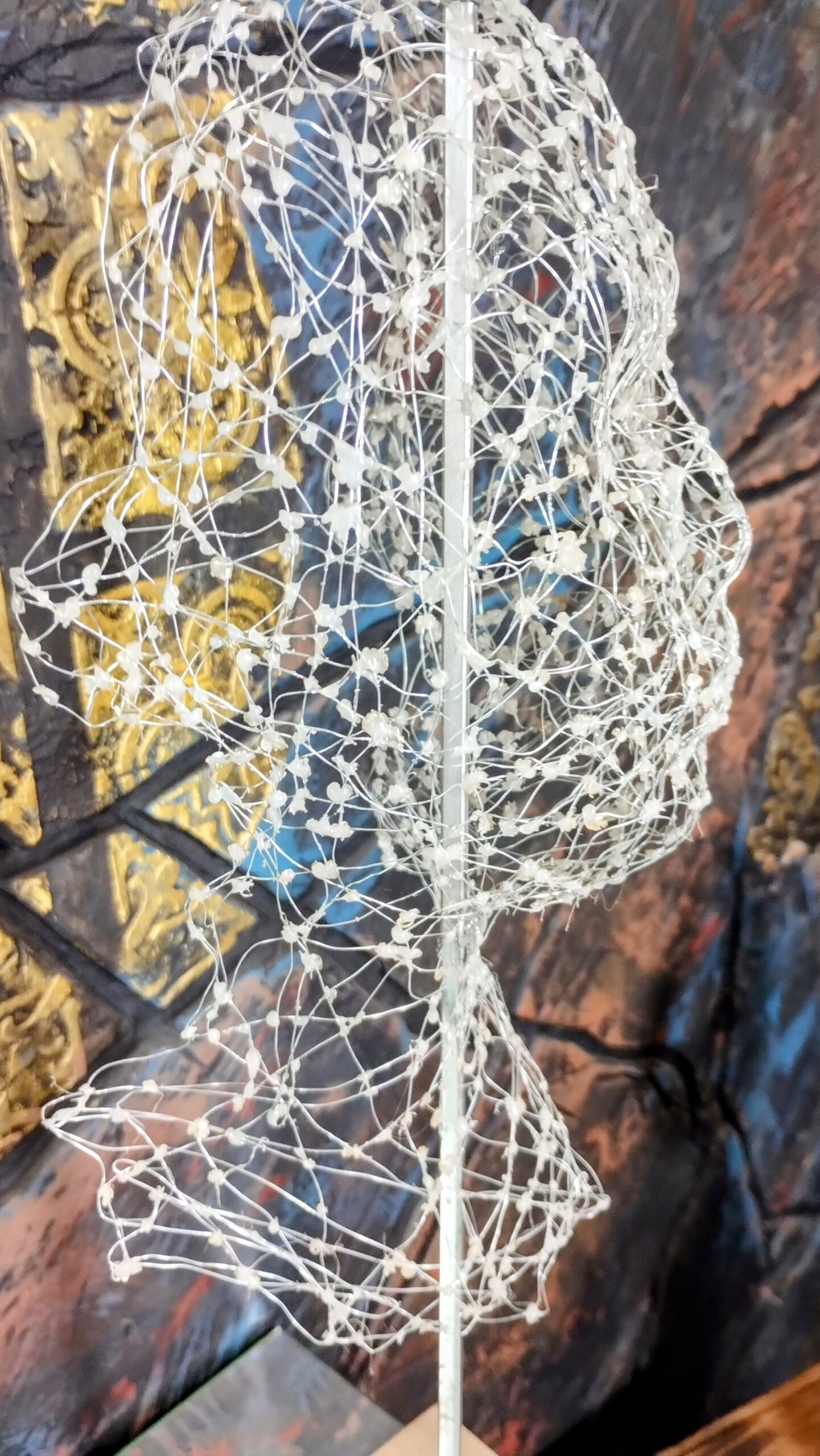 Człowiek z żelaza to rzeźba stworzona przez podopiecznych Fundacji Na Pomoc. Jest niezwykła i pełna znaczenia. Przedstawia ona męską twarz, która została wykonana z cienkiego druciku i kleju. Starannie i efektownie pleciona, ultra delikatna i subtelna, została wykonana w 100% ręcznie, a sam czas potrzebny na stworzenie wyjątkowego dzieła czyni je cennym i unikatowym. Ta rzeźba jest wyjątkowym wyrazem kreatywności i zaangażowania podopiecznych Fundacji Na Pomoc.