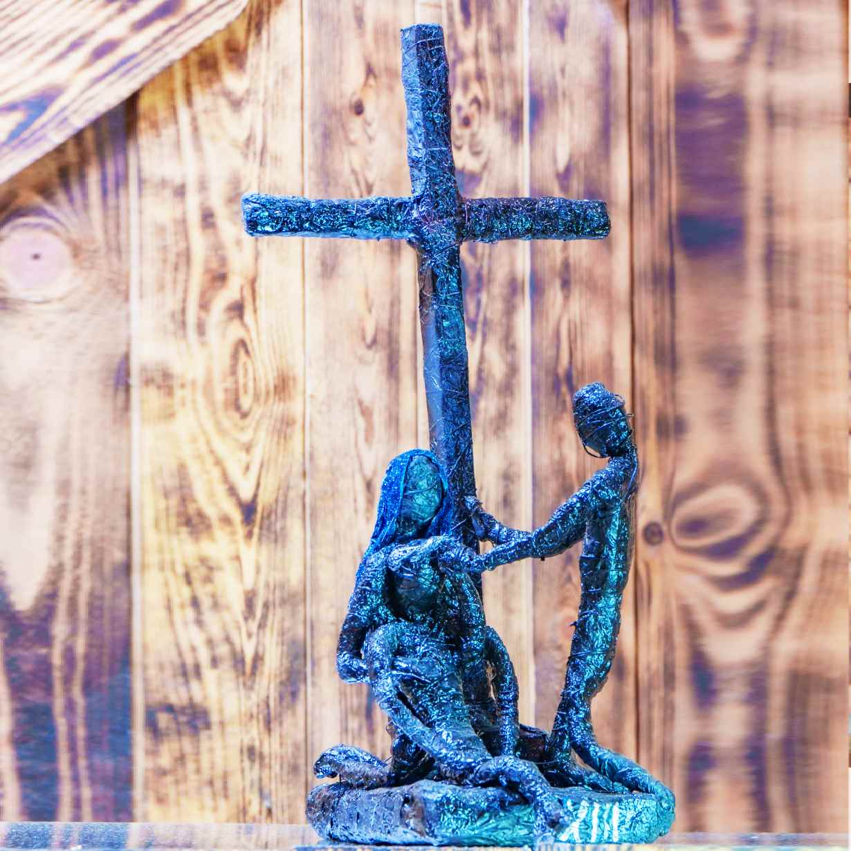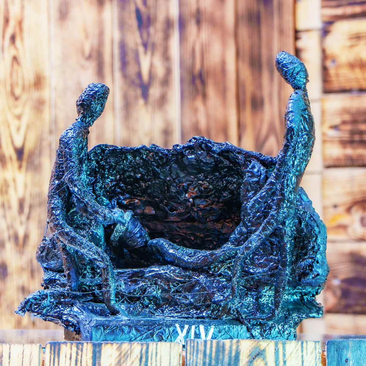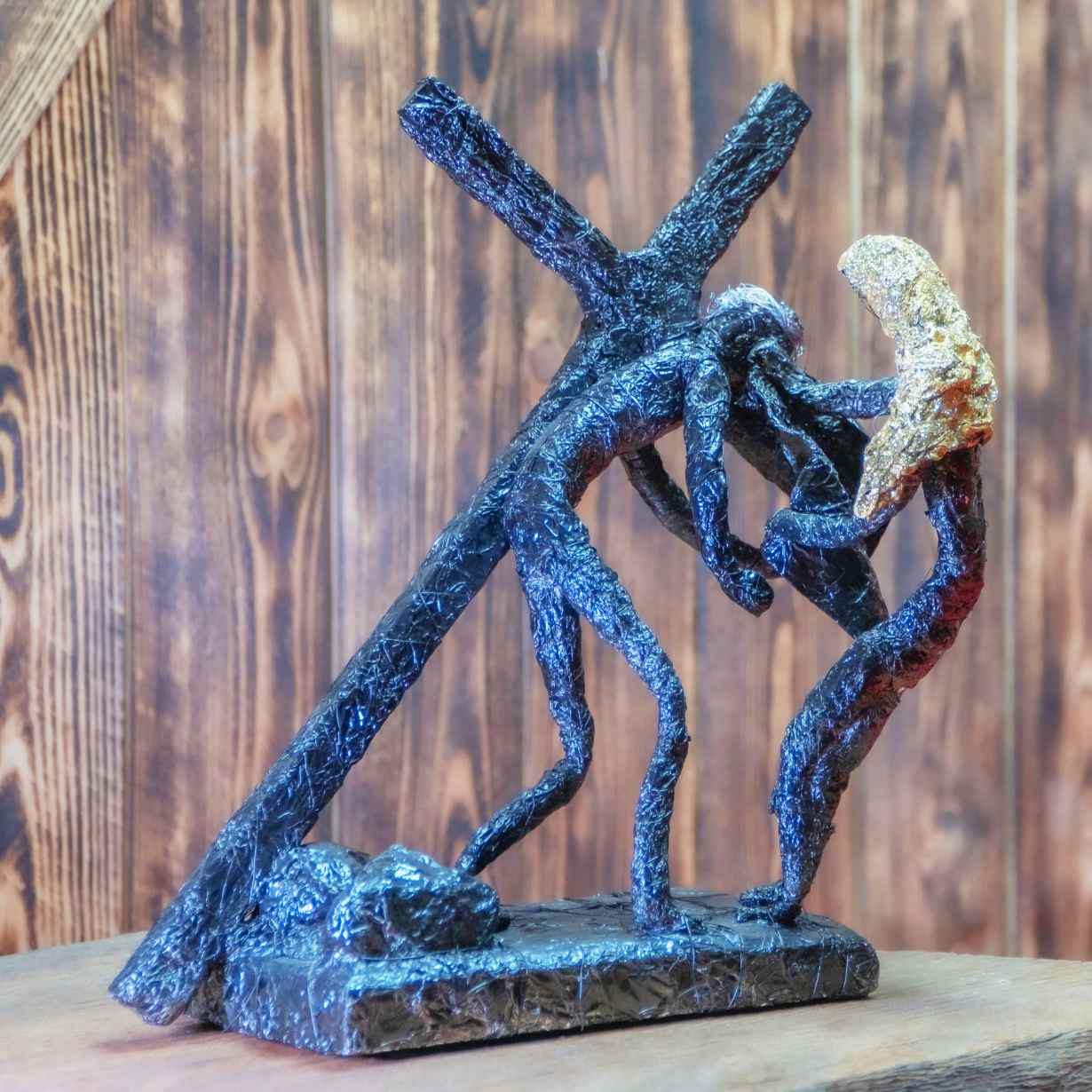 - Materiał: folia aluminiowa, farba akrylowa, lakier bezbarwny, drewno