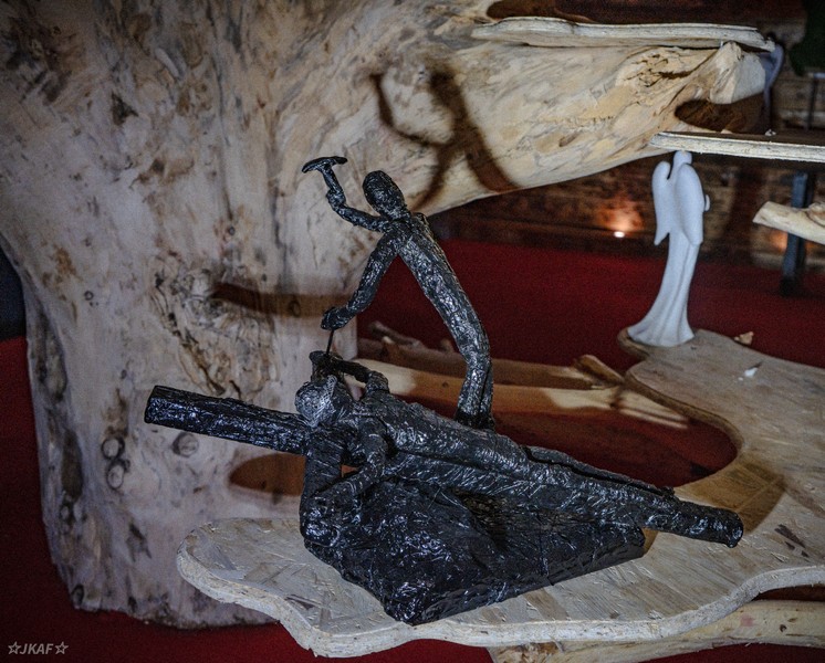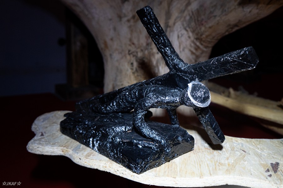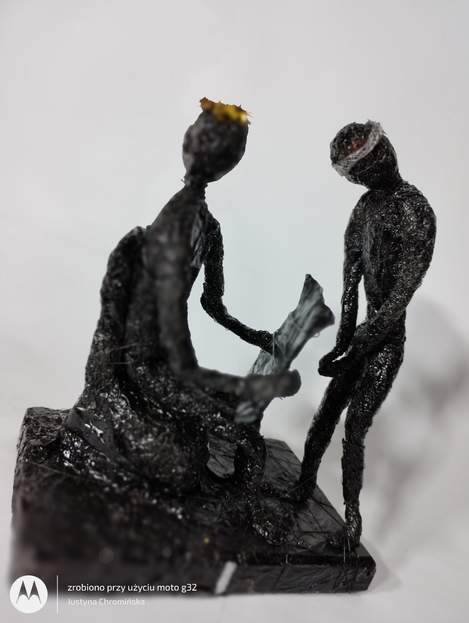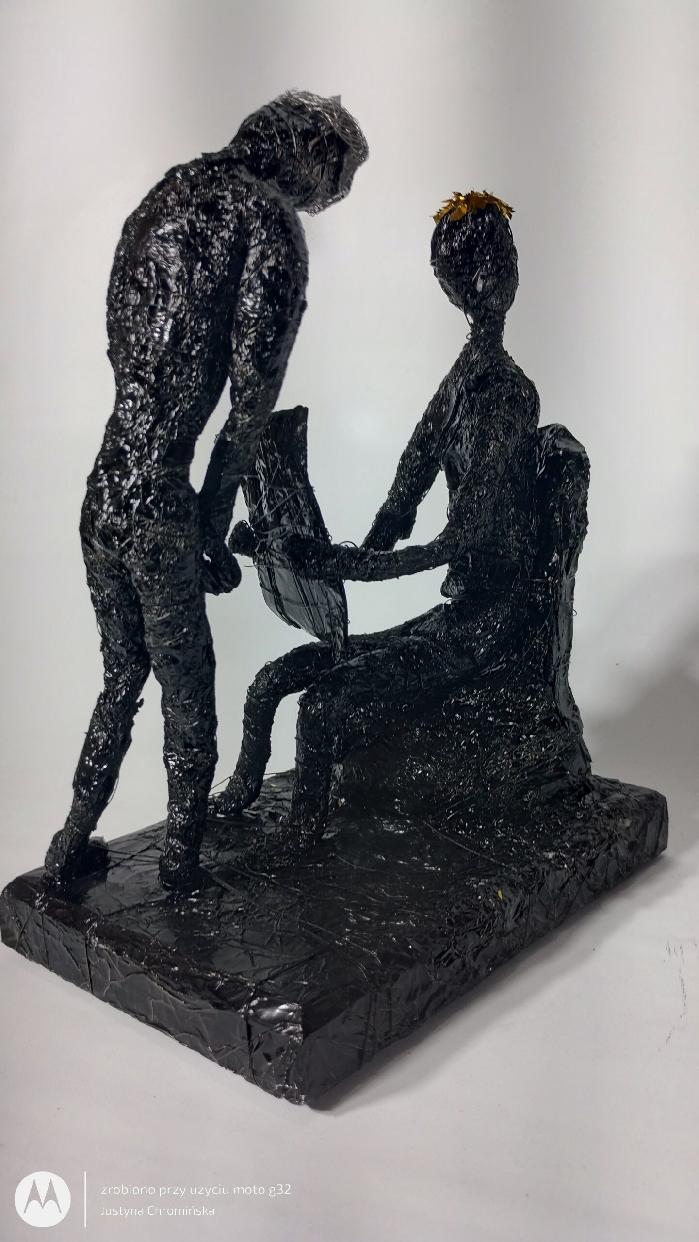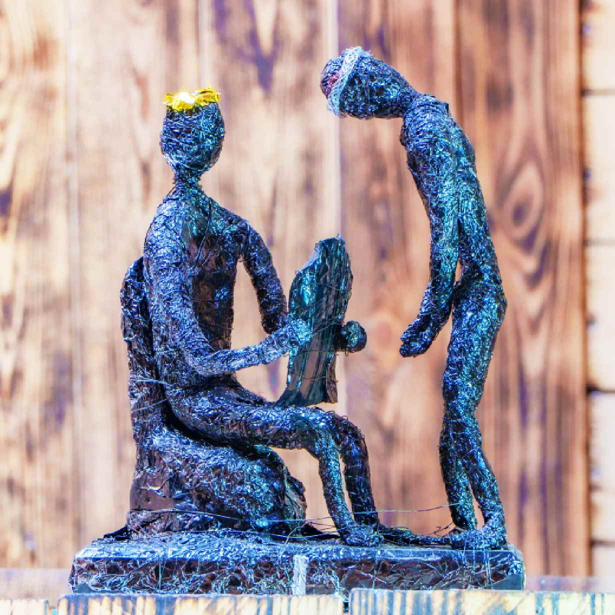 - Materiał: folia aluminiowa, farba akrylowa, lakier bezbarwny, drewno