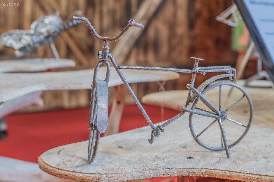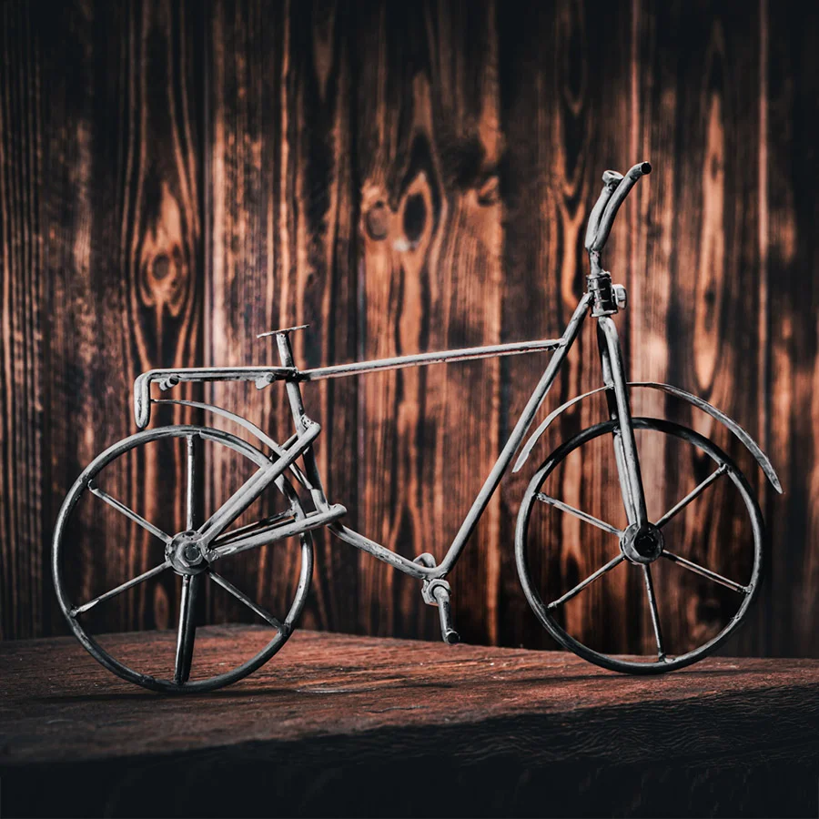 Unikalna metalowa figurka roweru wykonana ręcznie z odzyskanego złomu przez utalentowanego rzemieślnika Roberta. Ta wyjątkowa figurka to połączenie pasji do twórczości oraz troski o środowisko naturalne.