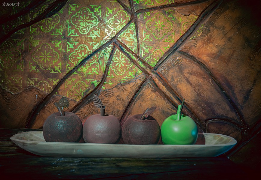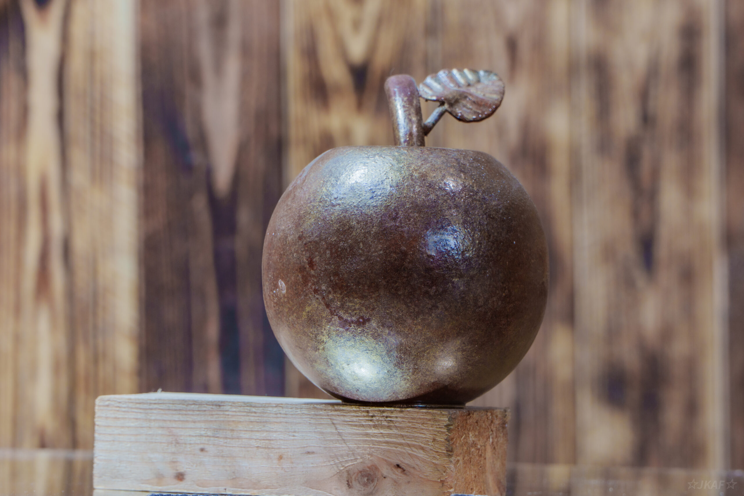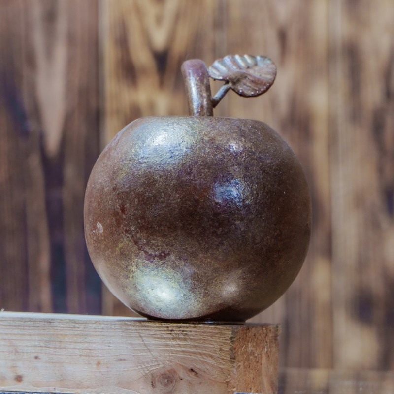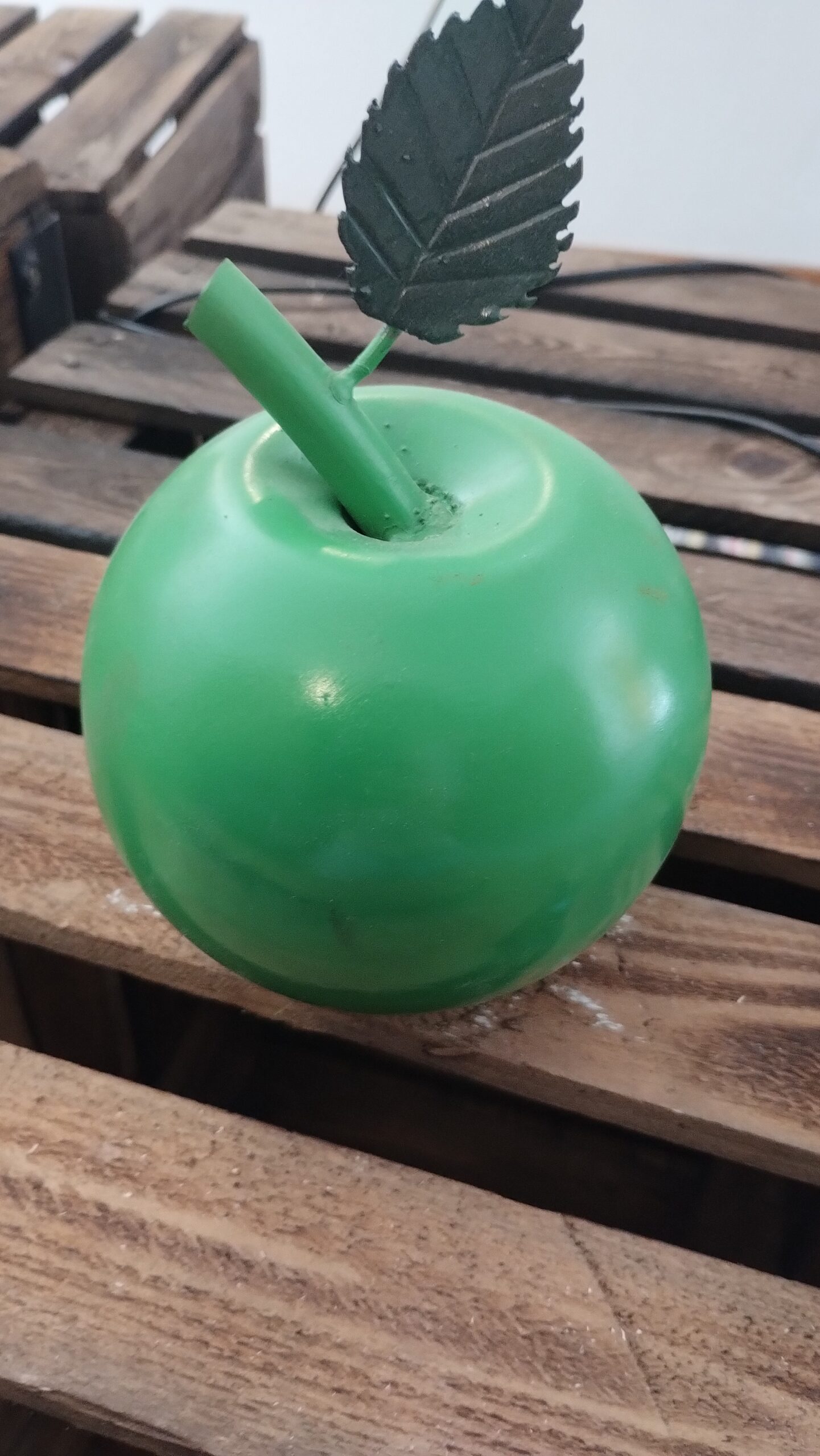 Metalowe jabłko, które zostało wykonane przez podopiecznych Fundacji Na Pomoc. Jest to unikalny produkt, który powstał z metalu pochodzącego z odzysku. Jabłko ma piękny rdzawy kolor, dodając mu charakteru i autentyczności.