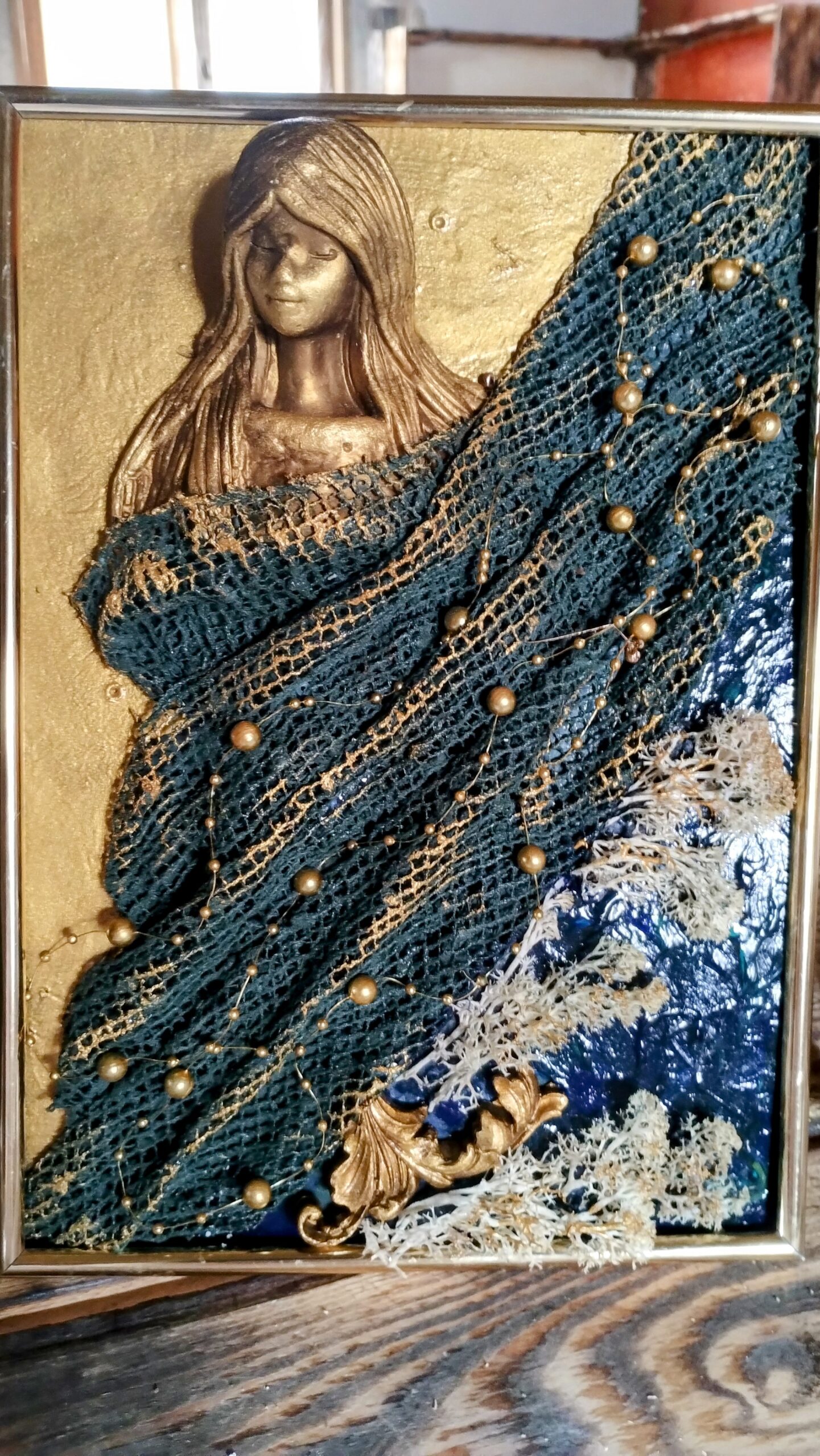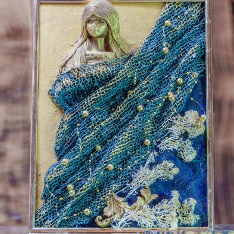 Oto obrazek, który przedstawia Anioła gipsowego w sukni utwardzanej metodą powertexu. Jest to unikalny produkt, który został stworzony przez podopiecznych fundacji Na Pomoc. Ta fundacja zajmuje się pomocą osobom w kryzysie bezdomności.