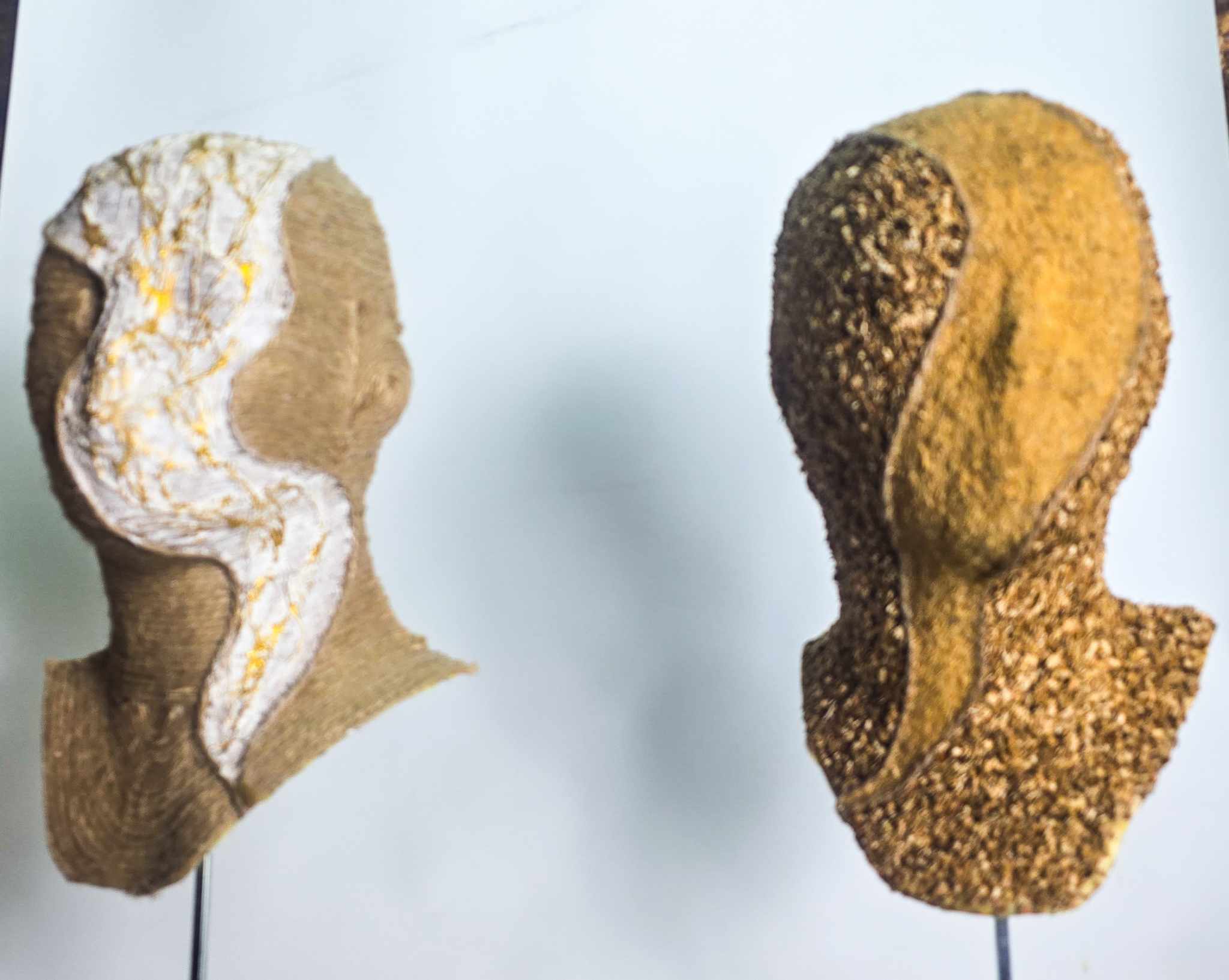 Piękne głowy wykonane przez podopiecznych Fundacji „Na Pomoc”. W 100% ręcznie, z produktów ekologicznych. Do zakupu w komplecie, bądź pojedynczo. Świetny dodatek do wnętrz w stylu skandynawskim. Wykonana została na bazie z folii aluminiowej pokrytej klejem i piaskiem ozdobnym w złotym kolorze, trocinami i wiórami i zabezpieczonej lakierem utwardzającym. Druga ze sznurka lnianego pokrytego w białej części powertexem.